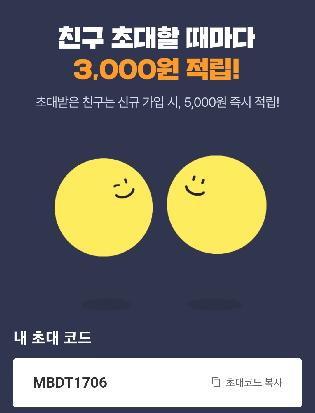 친구 초대 아시죠? 코드를 넣으면 초대받은 친구에게 5천원 적립금이 쌓입니다.