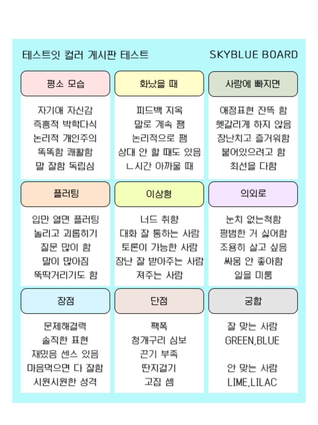 테스트잇 프로필 연애테스트 컬러게시판 mbti 링크