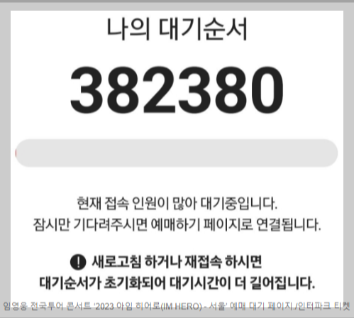 서울 임영웅 콘서트 예매 대기 순번 보이시나요?