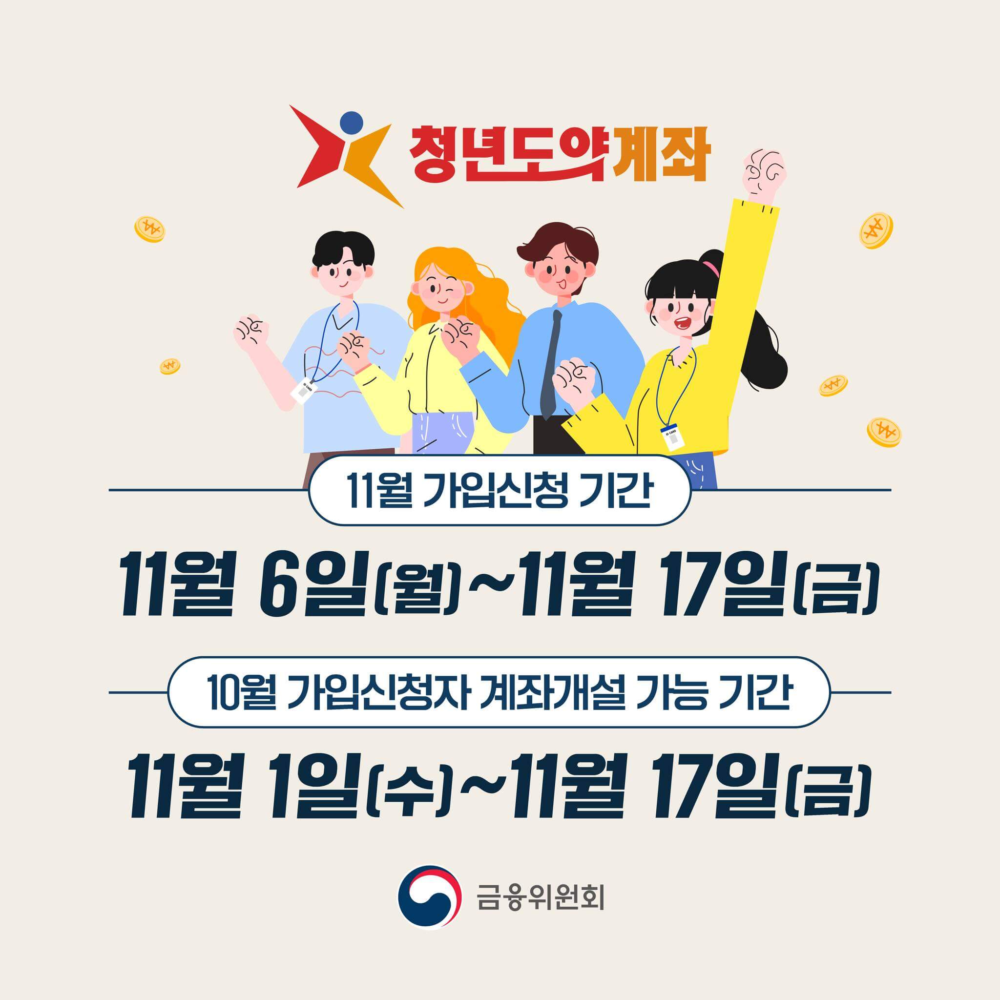 청년도약계좌 11월 신청기간은 11월6일(월)부터 11월17일(금)요일입니다.