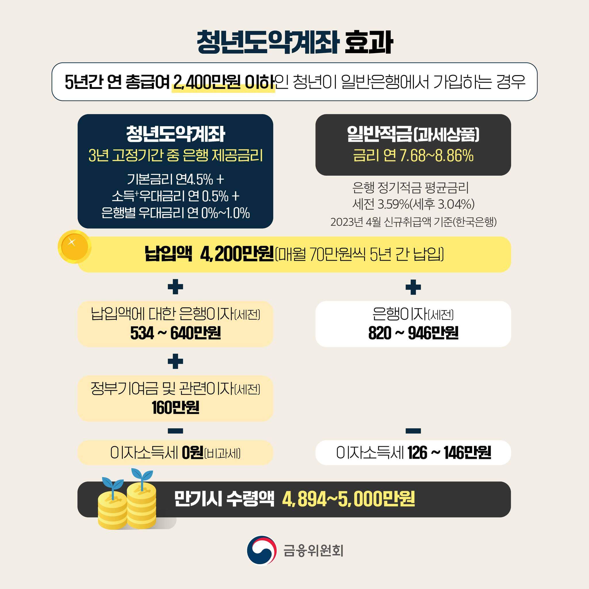일반 적금(과세 상품)과 비교한 아래 사진에서 정부 지원금 및 혜택을 확인하세요.