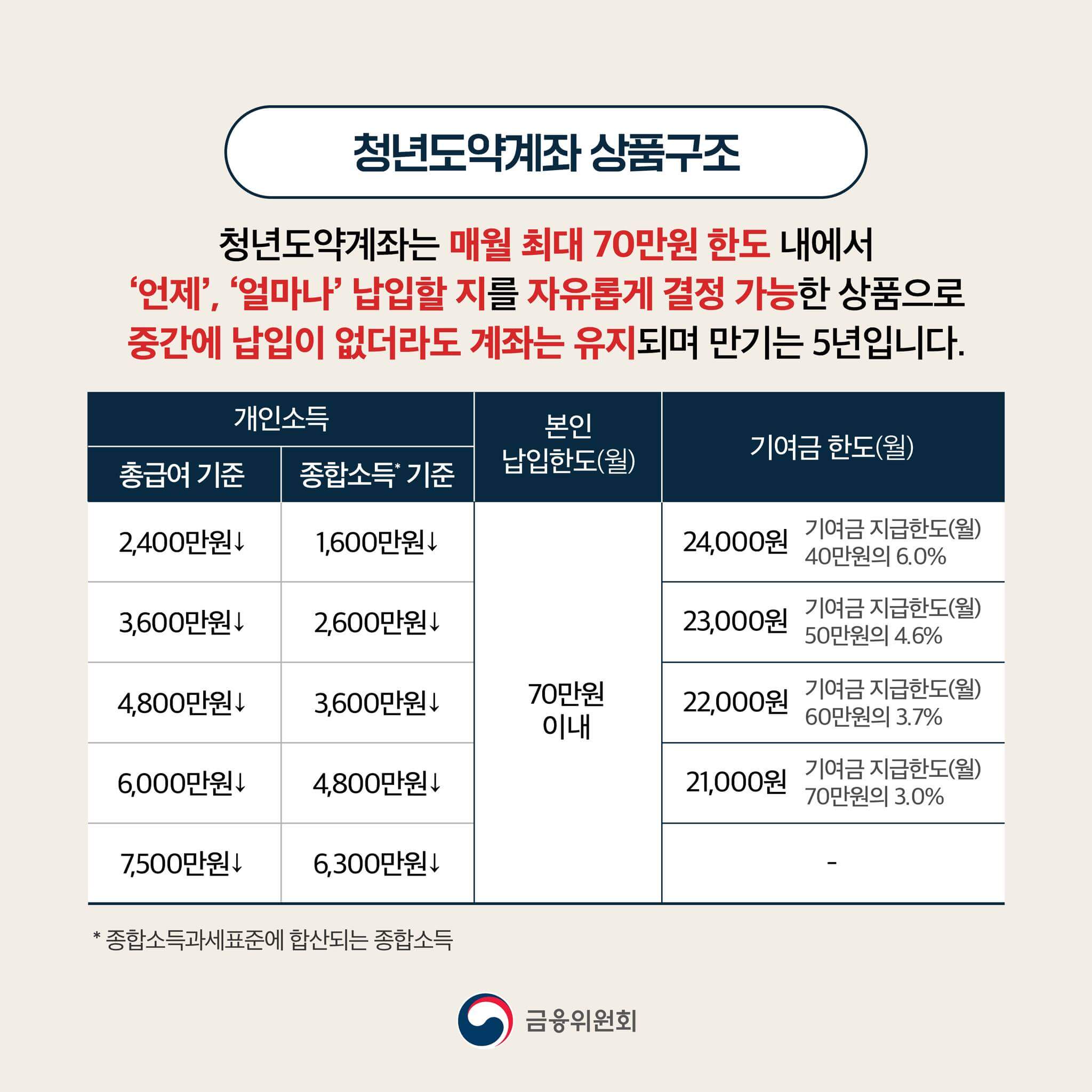 - 2022년 2월에 시행한 청년희망적금 상품과 중복 불가하니, 꼭 해지하시고 신청하세요.