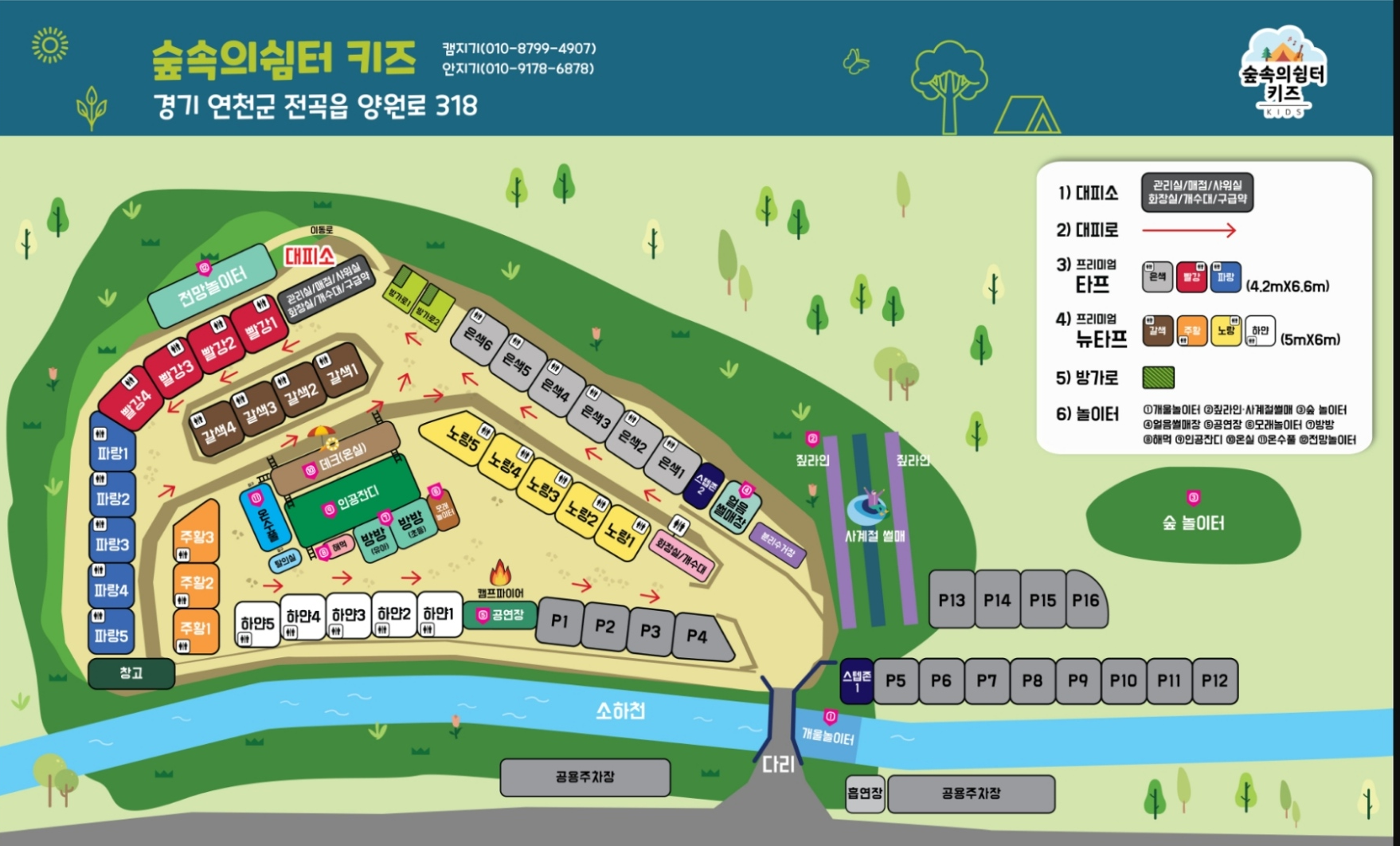 숲속의쉼터키즈는 아이들을 위한 캠핑장으로, 숲속의쉼터보다 규모는 작지만 다양한 놀거리가 마련되어 있습니다.
