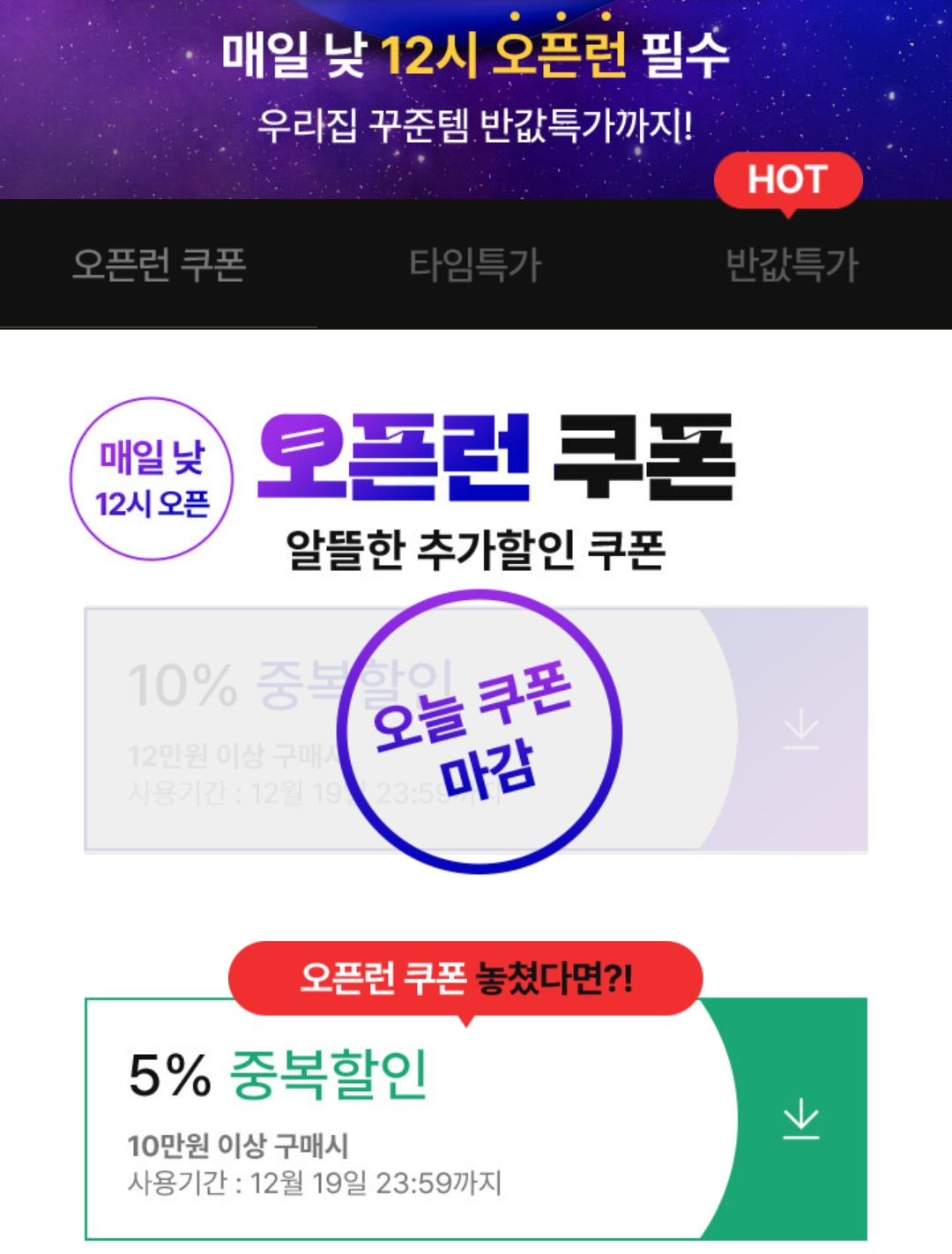 이번 반값 알뜰위크도 50% 할인하니까 굳이 감사제를 기다릴 필요가 없네요. 50% 할인에 신규 중복할인 10%까지!