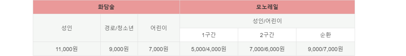 | 화담숲 | 모노레일 | ||||