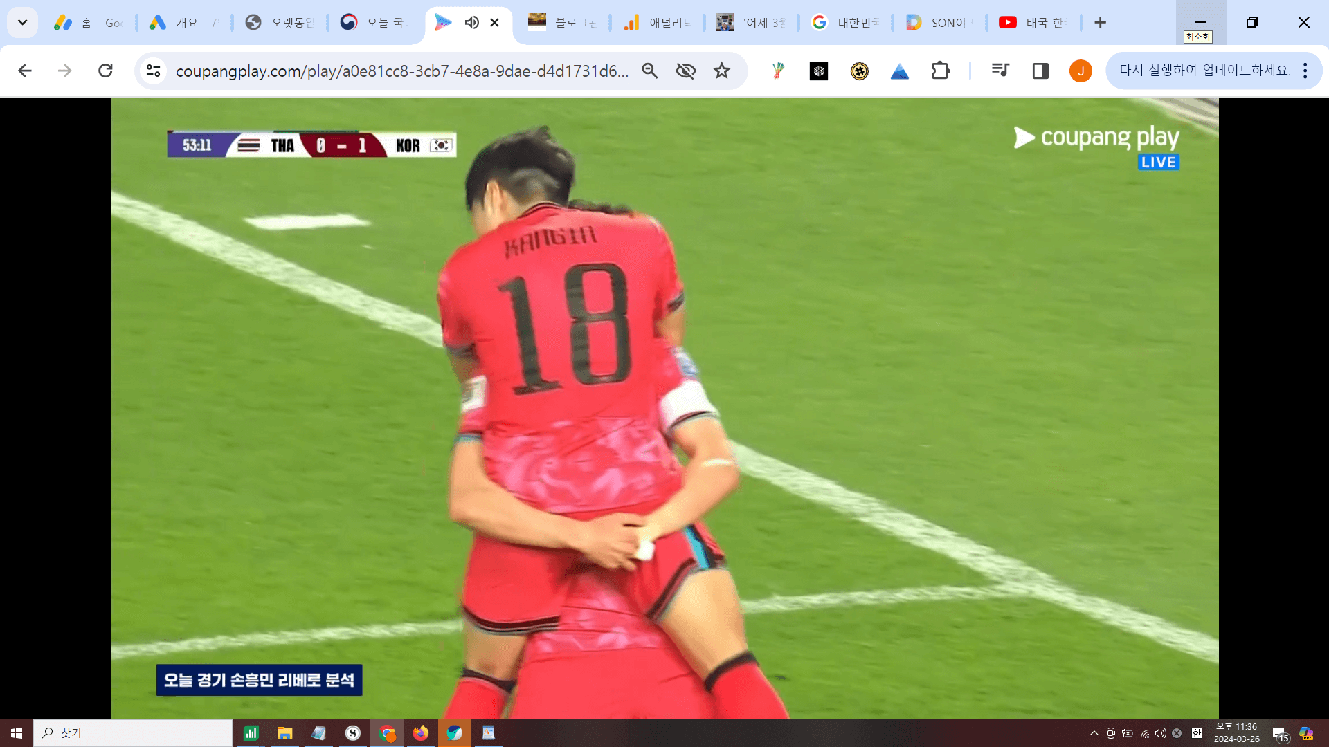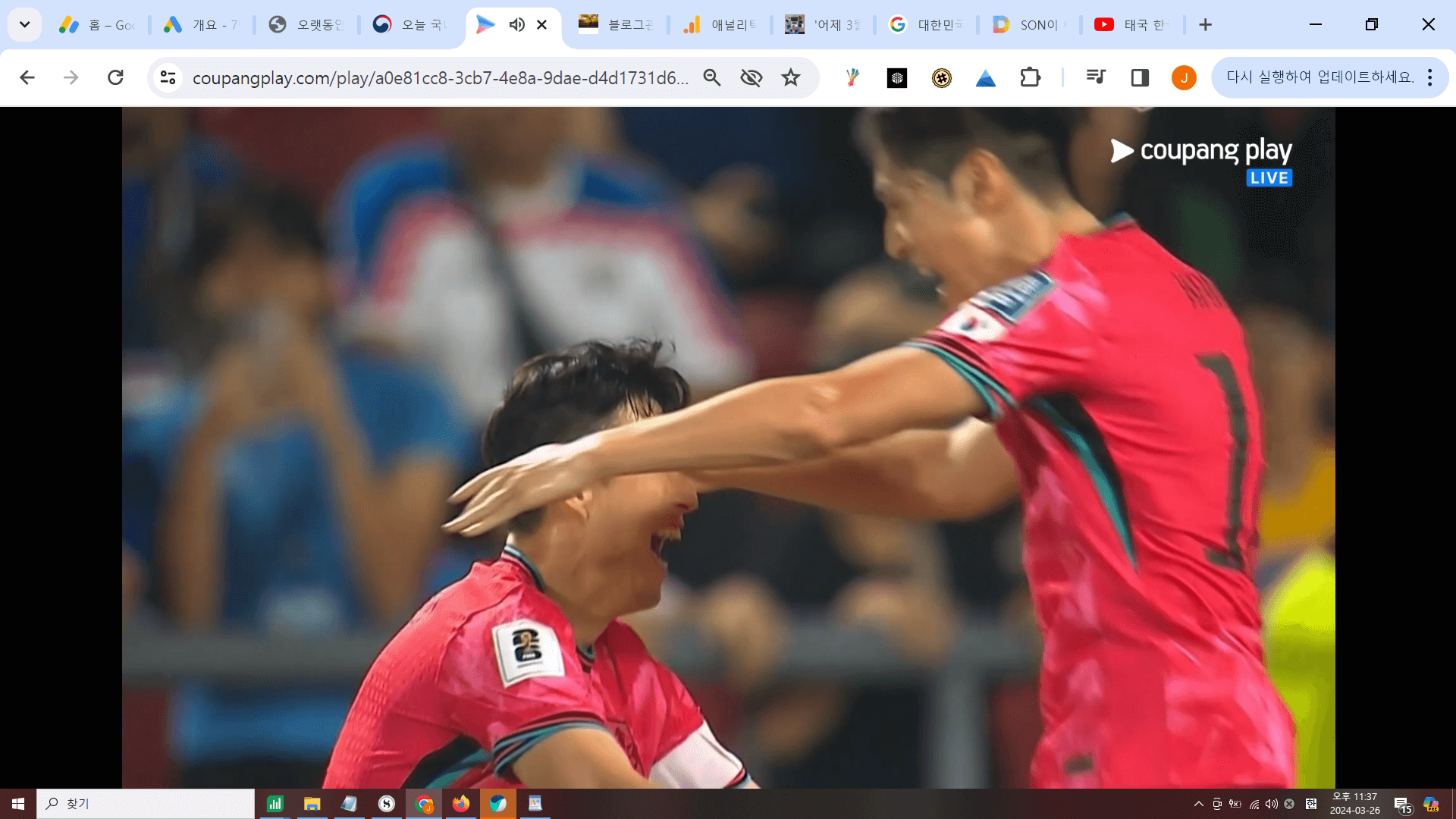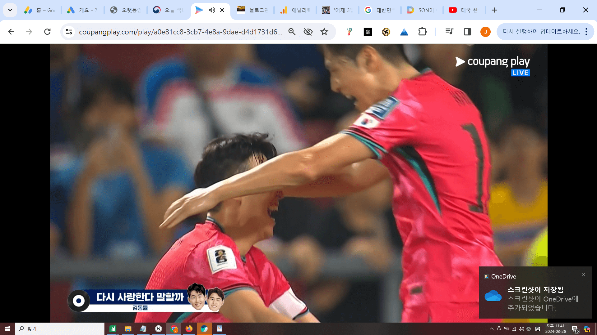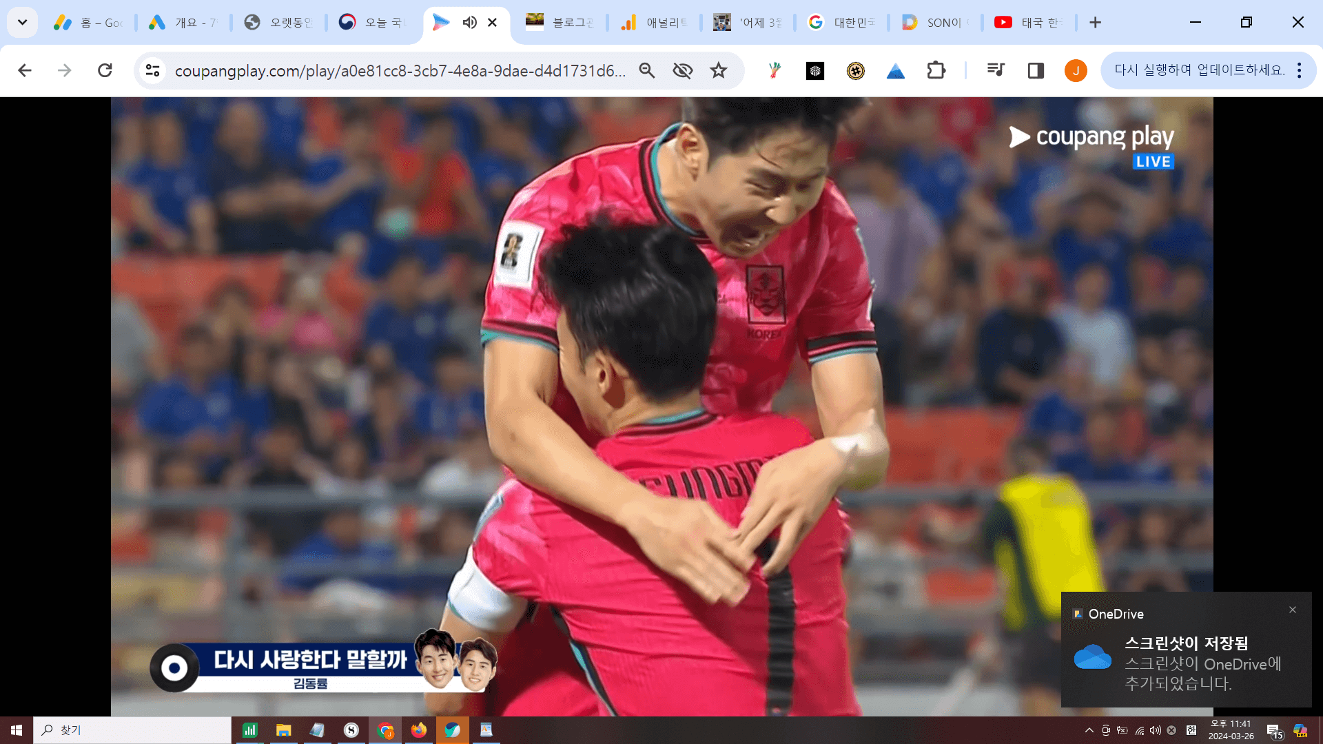 쿠팡플레이 선곡 미쳤네요. 손흥민 이강인 선수 포옹 장면 배경음악으로 다시 사랑한다 말할까 선정한 센스, 칭찬합니다.