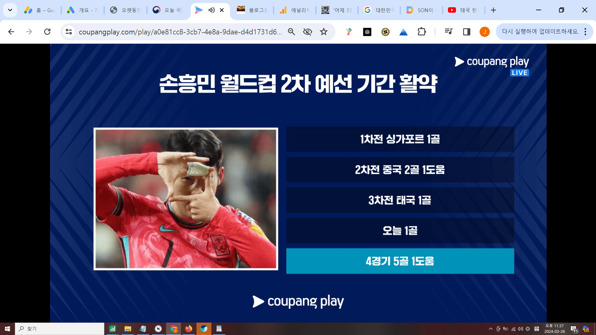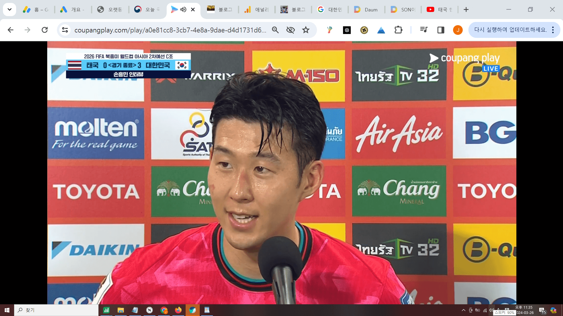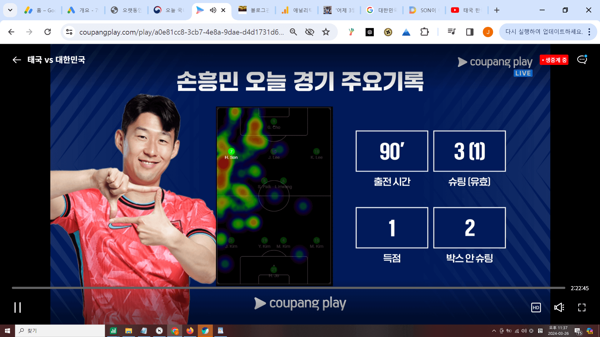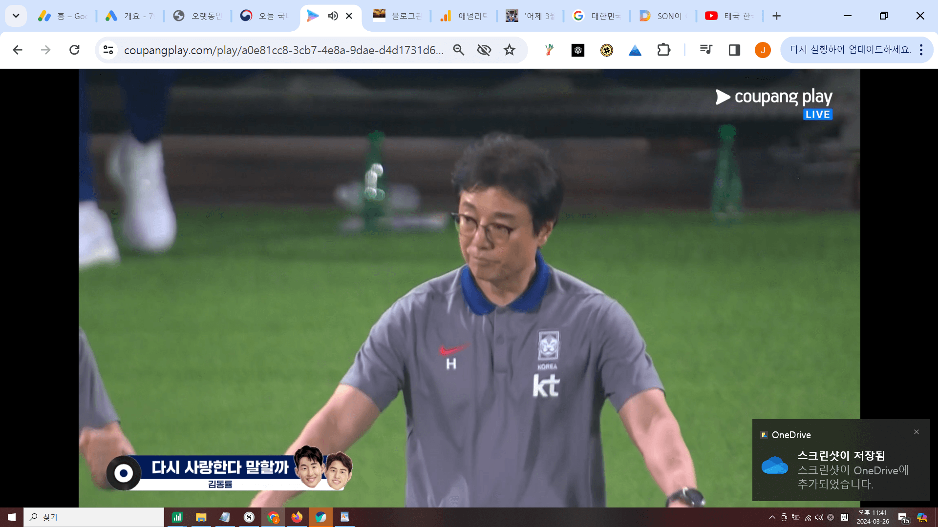 쿠팡플레이 선곡 미쳤네요. 손흥민 이강인 선수 포옹 장면 배경음악으로 다시 사랑한다 말할까 선정한 센스, 칭찬합니다.