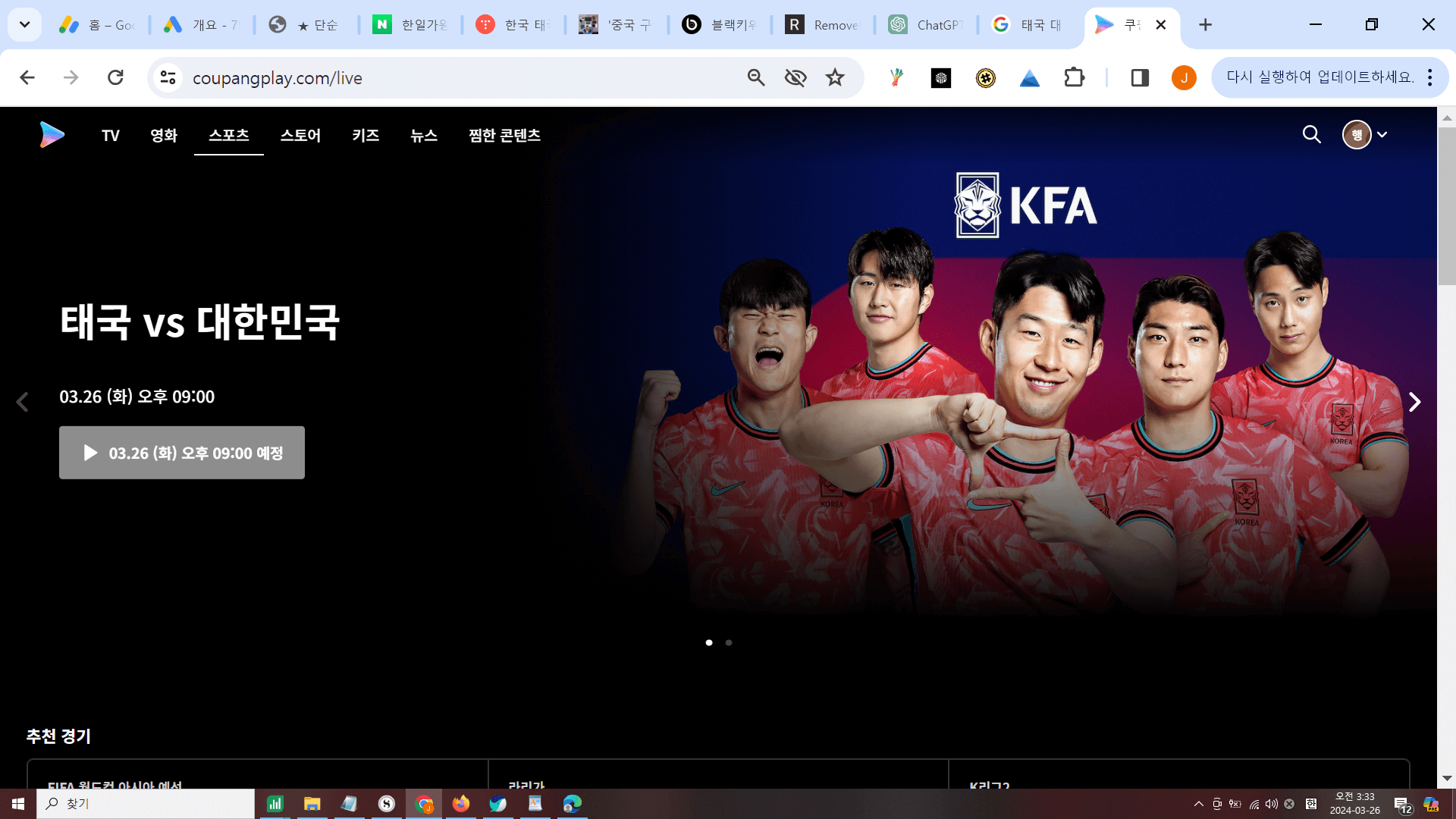 어제 자 3월 26일 태국에서 펼쳐진 한국 태국 축구 경기 북중미 피파 월드컵 아시아 예선전 C조 2차 예선 4차전이 대한민국의 승리로 막을 내렸습니다.