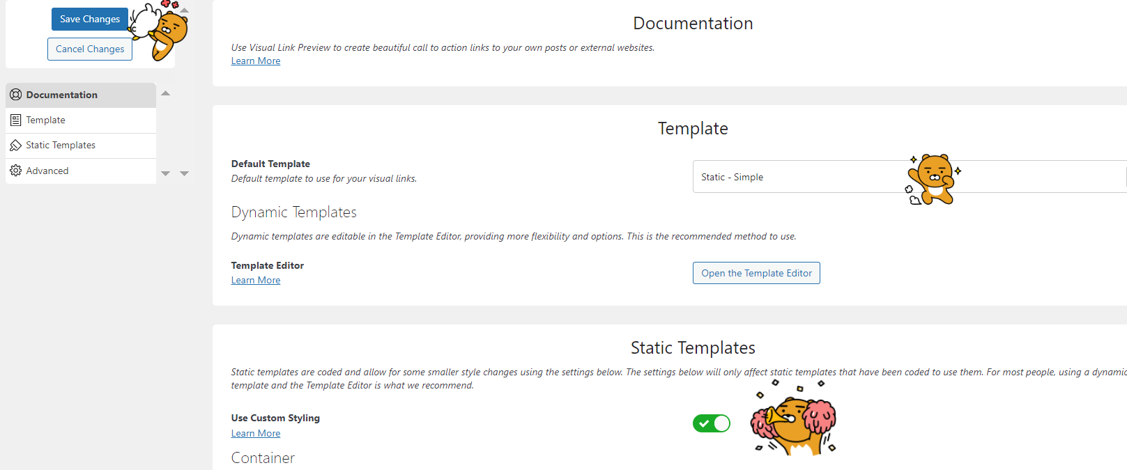 ※플러그인 설치 후, 아래 사진에 있는 설정 >>visual Link Preview >>> Documentation 을 차례대로 클릭하세요.