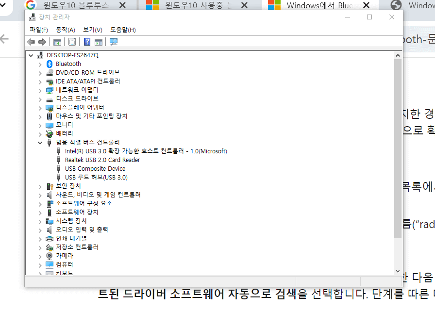 블루투스 드라이버 사라지는 현상 관리장치자 못 찾는 컴맹 환영