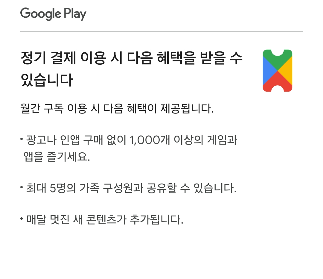 구글플레이 패스는 광고 없이 프리미엄 콘텐츠를 이용할 수 있으며, 가족과 함께 공유할 수 있는 장점이 있습니다.
