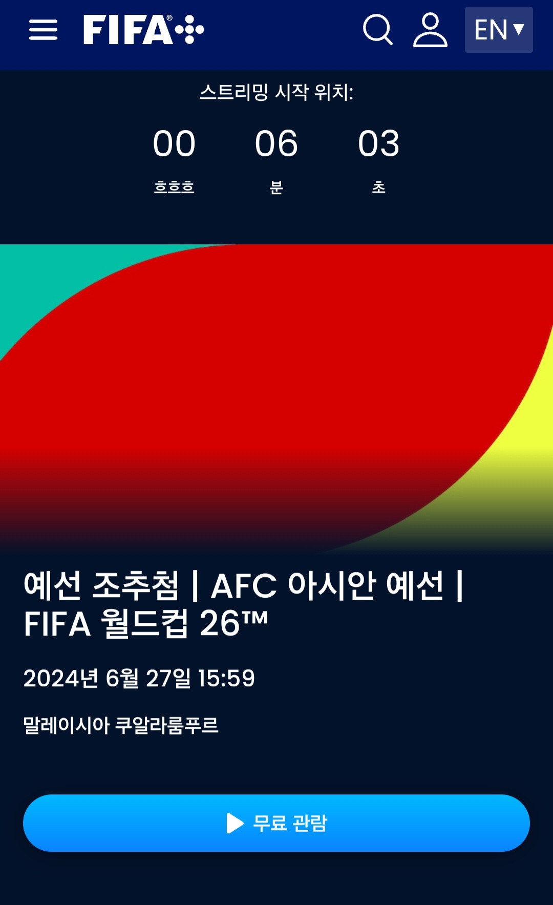 피파 홈페이지에서 무료로 생중계로 시청하세요. 유튜브로도 생중계됩니다.