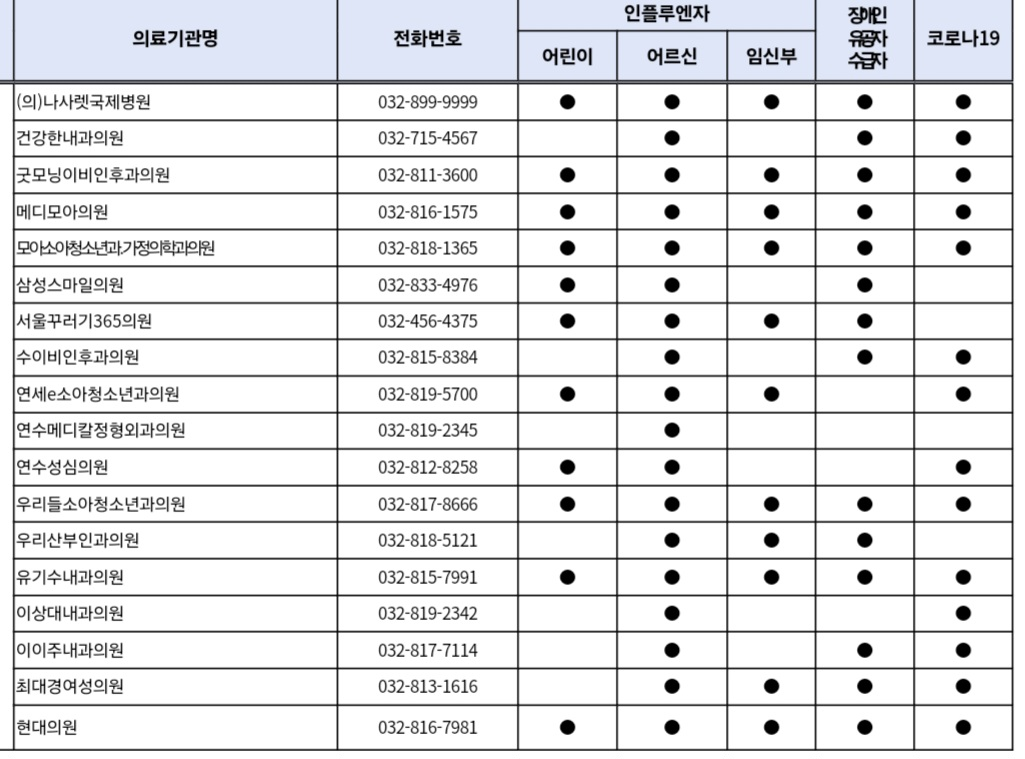 연수동 독감 인플루엔자 코로나 무료 접종 병원과 각 병원에서 접종하는 대상을 미리 확인하셔서 두 번 걸음하는 일이 없도록 하세요. 보건소에서는 특수 질환자들만 접종합니다.
