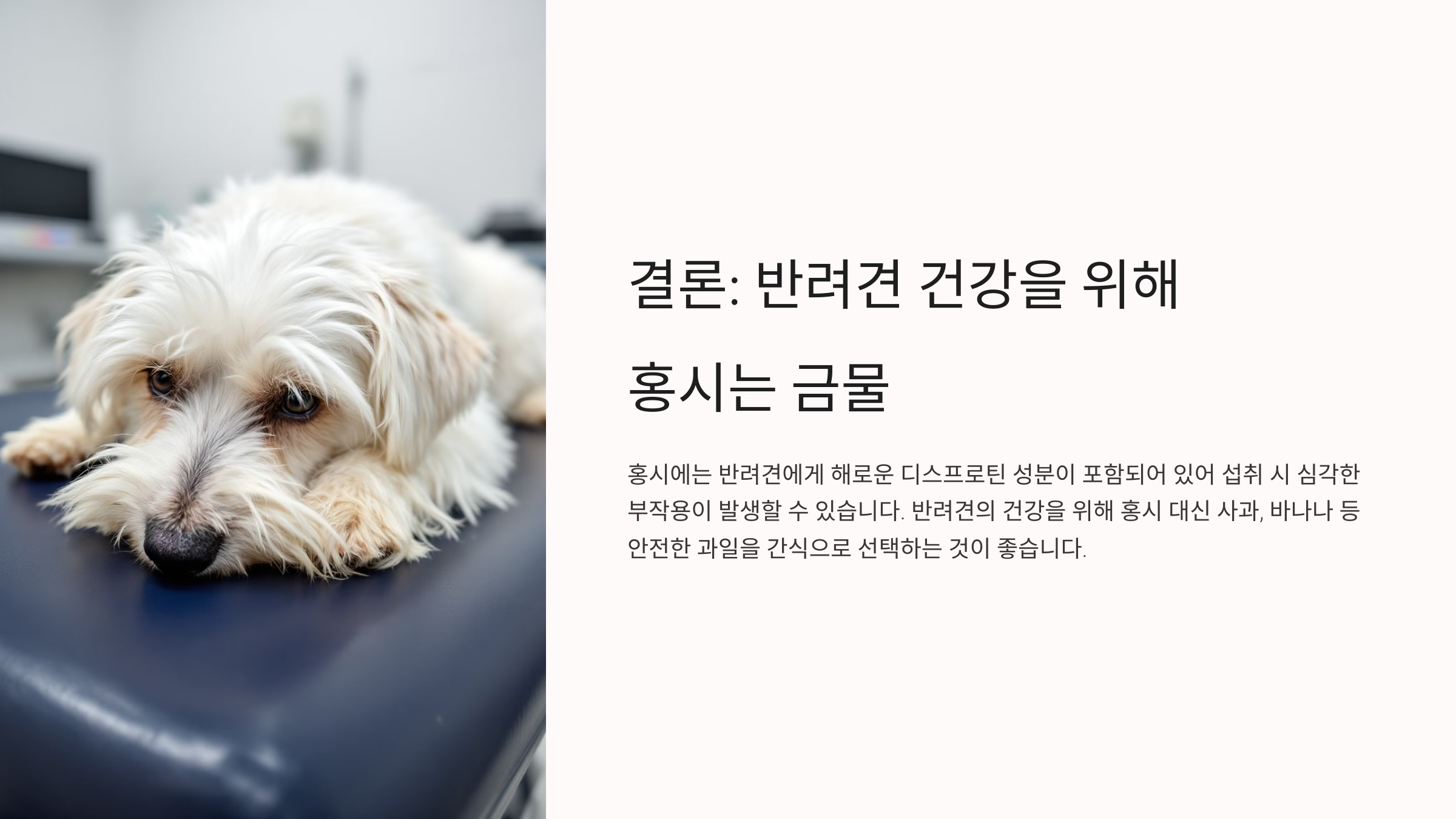 또한, 홍시의 껍질도 제거해주는 것이 좋습니다. 홍시 껍질은 소화에 부담을 줄 수 있으며, 반려견의 몸에 불필요한 부담을 줄 수 있습니다.