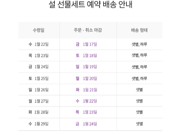설 선물세트 예약 배송 일정